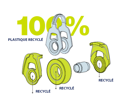 La nouvelle gamme de poulies à palier lisse pour voile légère est composée de plastiques 100% recyclé ainsi que de 20% de matière en moins que la version précédente.